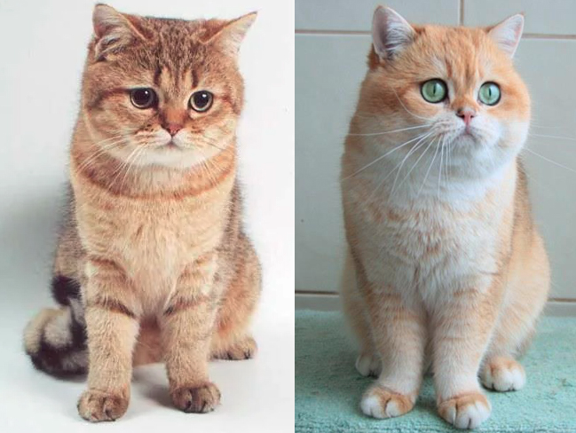 В начале 2000-х российские заводчики начали импортировать в Россию первых золотых производителей. Одним из них был британский кот Witchwoods Lionheart (2002-года рождения). Его окрас по родословной - ny 12. Если сравнить этого кота с котом Ermine Trace Qorall (2017-го года рождения), то мы как раз и увидим результат 15-летней селекционной работы заводчиков, желавших максимально приблизиться к требованиям стандарта WCF: