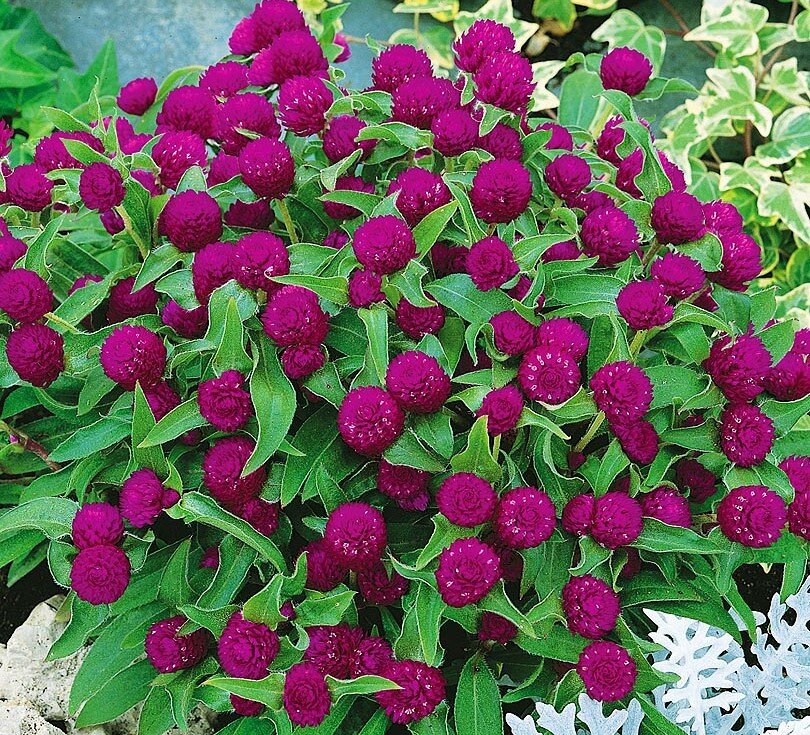 Гомфрена - однолетняя культура из семейства Амарантовые. Простой, но в то же время впечатляющий и неординарный цветок. Летом он достойно украшает клумбы, дополняет цветники, создаёт настроение, провожая вдоль дорожек. Зимой, собранная и засушенная гомфрена, напоминает о прошедших теплых деньках и уже участвует в декоре дома. Гомфрена - идеальное бордюрное растение. Ее часто можно встретить на альпийских горках. При желании из гомфрены можно сделать целую цветущую полянку. Лучше всего она выглядит именно при посадке группами. Хотя гомфрена образует множество боковых побегов и даже одно растение несет в себе огромное количество цветоносов. Также культура отлично приживается на балконных ящиках. Иногда даже выращивается в качестве домашнего растения на подоконниках. Небольшие шаровидные соцветия культуры по 3-4 см на первый взгляд напоминают обычный луговой клевер. Высота кустов гомфрены до 50-60 см. Но обычно в средней полосе они не превышают 35 см. Цветки растения различной окраски: бел