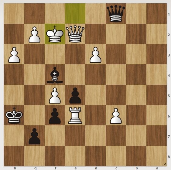 Шахматная задача. У белых лишнее "качество", но черные начинают и ставят мат в 2 хода. Подписывайтесь на канал, ставьте лайк. Решение смотрите далее. 1. ............................. черные дают шах слоном. 2. Белые бьют королем черного слона, черные ставят ферзя на "f4", мат. Следующая задача тут