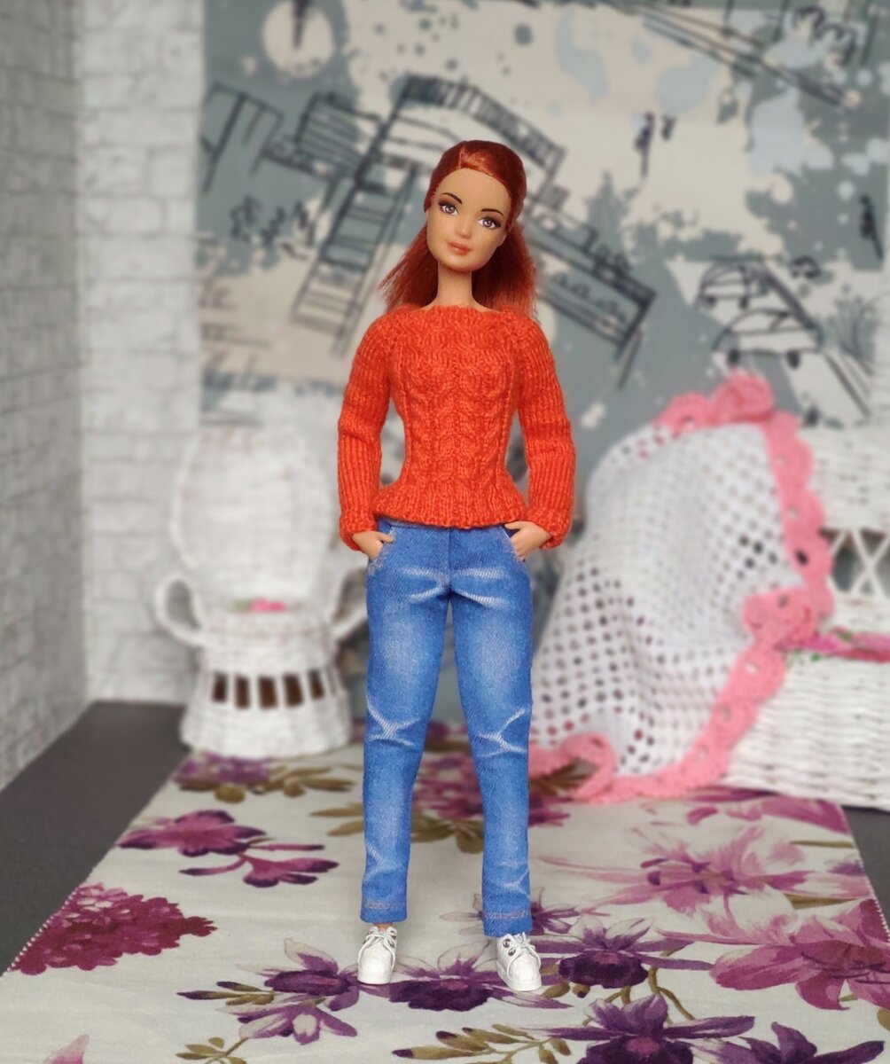 Приветствую всех, я никогда не относила себя к поклонникам Барби. Даже в детстве всегда удивлялась, почему у данных кукол такая странная фигура: мизерная талия и конус вместо верхней части. И вот летом совершенно неожиданно купила Барби Йогу. Что я могу сказать: если бы в детстве у меня была такая Барби - я бы стала самым ярым ее поклонником и дело не только в подвижности, но и нормальной фигуре, хотя тело и длинновато немного. Но не смотря на взаимную симпатию с куклой, наряжать я ее не спешила, нет, не так, я нашла в интернете выкройку джинсов и даже сшила по ней, но результат - обнять и плакать и нет, дело не в моей криворукости, как раз тут все отлично, но посадка вышла ужасная. Фото с близи нет, но поверьте на слово, я очень старалась поставить куклу так, чтобы максимально скрыть недостатки, попу даже не фоткла И только совсем недавно, когда после полугодовых раздумий ко мне приехала Барби Пышка и Тамика Лукс я поняла, что даже худенькие барби бывают с разными фигурами и совершен