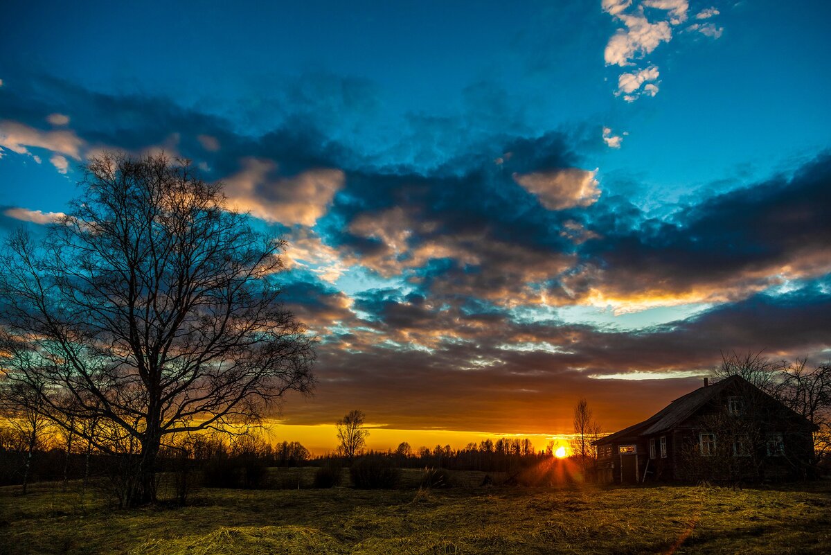 В детстве слова рассвет и закат были чисто утилитарными понятиями. Рассвет? Можно ещё поспать. Закат? Пора домой. Фототехника была не доступна, да и занятие фототворчеством было чем-то странным, неинтересным и слишком далёким. Время идёт, интересы меняются и понятия рассвет и закат стали для меня ритмом жизни и центральными элементами творческих порывов. Мог ли себе представить босоногий паренёк, сидящий на ветке этой берёзы в своём детстве, представить, что взрослым он будет ловить и соседский дом и эту самую берёзу в кадр, совмещая часть деревни с долгожданным закатом? Наверное мог, но заботы были совершенно другими...