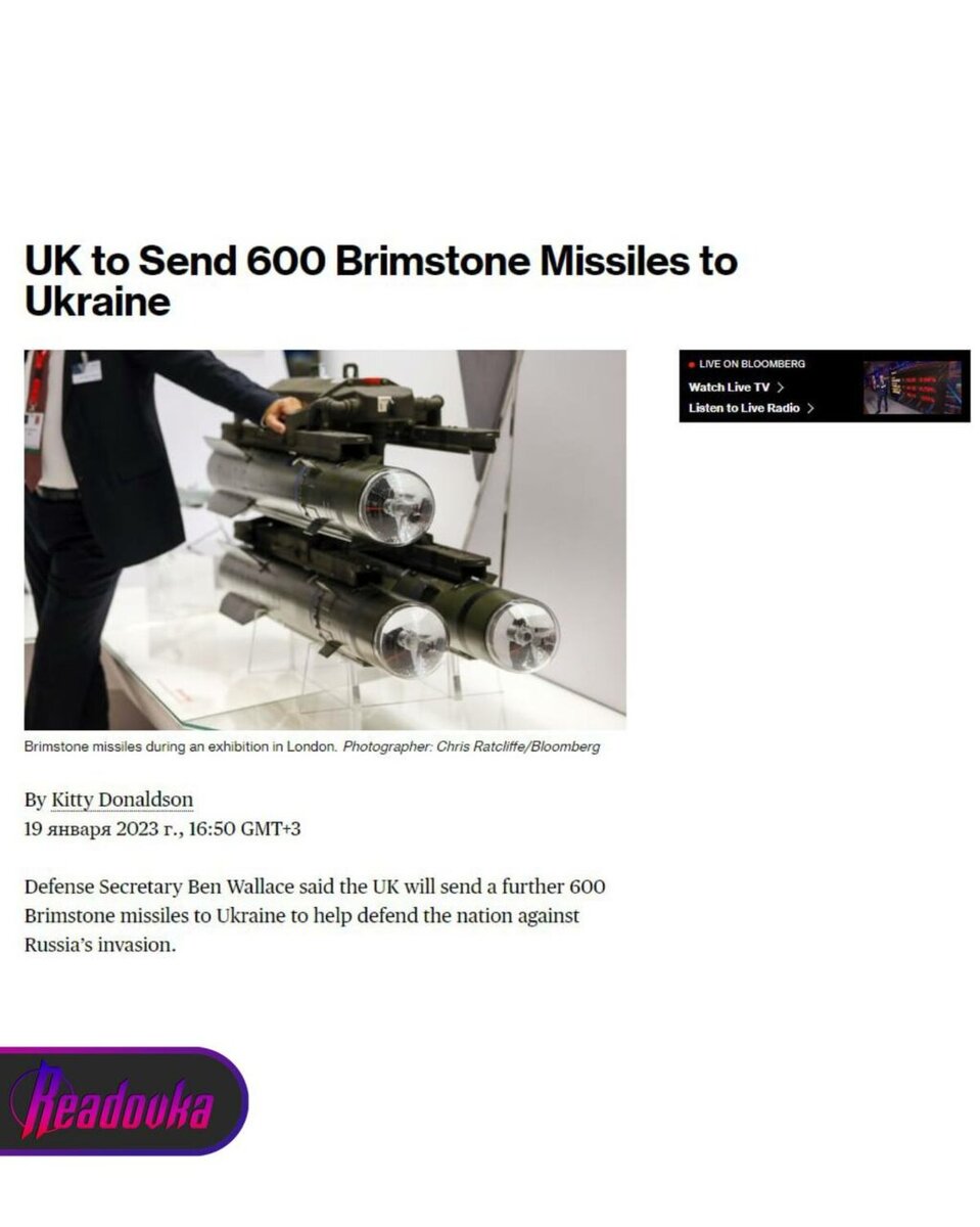 Их стоимость оценивается в 75 млн долларов. Во время встречи с другими министрами обороны на военной базе Тапа в Эстонии министр обороны Бен Уоллес заявил, что Великобритания планирует отправить 600 ракет Brimstone на Украину. Он отметил, что Запад в вопросе поставок вооружения сплочен и «в этом деле надолго». Поставка очередных 600 ракет входит в анонсированную ранее военную помощь. Великобритания собирается поставить более 200 единиц различной бронетехники, в том числе и танки Challenger 2. При этом, по словам Уоллеса, Великобритания планирует снабжать Украину вооружением и в следующие годы. Ранее Readovka писала о том, что США сомневаются в необходимости поставок «Абрамсов» Киеву.