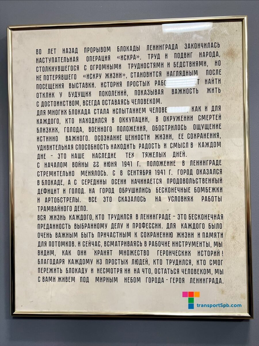 операция «Искра». Специально к памятной дате в Экспозиционно-выставочном комплексе "Горэлектротранса" на Васильевском острове, в Трамвайном парке №3, открыли большую экспозицию "Искра жизни": она рассказывает о том, как жил и работал осажденный город. TransportSPb посчастливилось побывать на выставке, и мы предлагаем вам прочитать наш репортаж о мероприятии. Проект создавали совместно сразу три музея. Музей хлеба представил рассказ о страшных днях в фотографиях и воспоминаниях работниц хлебозаводов. Музей "Разночинный Петербург" подготовил книги, которые издавали в городе во время блокады, а также серию работ знаменитого художника Алексея Пахомова: она посвящена восстановлению Ленинграда в первые послевоенные годы. Ну, а "Горэлектротранс" рассказывал о работе городского пассажирского транспорта в то тяжелейшее время. На выставке можно было узнать о работниках "Горэлектротранса", которые внесли особый вклад в жизнь