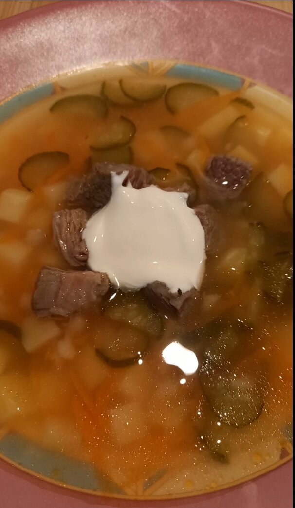 Ох , и люблю я этот супчик! Особенно зимой. Да со сметанкой, да с ядреными солеными огурчиками, выращенными своими руками на любимой даче. Обязательно с перловкой,ведь эта крупа-источник витаминов и аминокислот, так необходимых нашему организму. Объедение!😋 Ну, что, разыгрался аппетит? Тогда приступаем. Сначала необходимо сварить бульон. Для этого я взяла говяжью лопатку с косточкой Залила водой и поставила на огонь до закипания. Как только закипело, проварила минуты 2 и слила первый бульон( делаю так всегда, варю первое только на втором бульоне). Мясо вынула, промыла кастрюлю, налила в нее чистой воды и поставила на плиту. Когда вода закипела, положила мясо, лук, чеснок, укроп, перец душистый. Через час мясо сварилось-бульон готов. Я вынула лук, чеснок, укроп и процедила бульон. Мясо вынула и положила в отдельную ёмкость. Перловку я сварила отдельно в кастрюле( 1 пакетик) Затем промыла ее под проточной водой Картофель нарезала небольшими кубиками Морковь натерла на крупной терке О