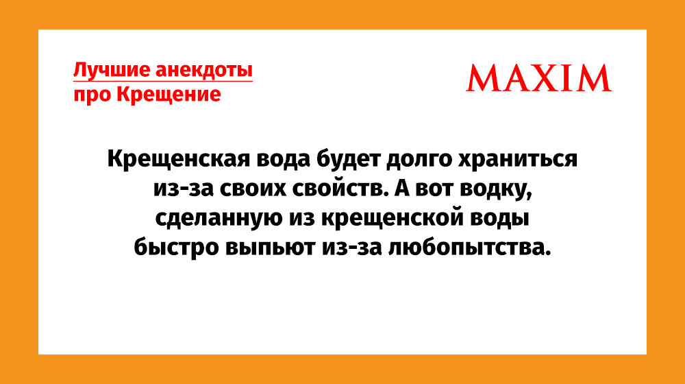 Анекдот тебя не согреет в проруби, но хотя на фотке ты будешь веселым. Почему на праздник Крещения Господня все лезут в прорубь, а на праздник Обрезания Господня никто не делает обрезания? — Наташа, чего плачешь?— Я говорила своему идиоту — не лезь. Ну, не лезь!.. Так нет же, полез в прорубь грехи смывать!— И?!— Да что и?! Главный грех отморозил! Кстати, был случай: «Принц Гарри рассказал, как отморозил пенис на Северном полюсе и что делал потом». Каждый год собирался искупаться в проруби на Крещение и только в этом году созрел перестать собираться. В ночь на Крещение миллионы людей идут к проруби продлевать лицензию на христианство. Зачем современная медицина, генная инженерия и нанолекарства, когда можно просто прыгнуть в ледяную воду и три раза перекреститься? Вода была настолько ледяной, что крещение совпало с отпеванием. Гадание на Крещение. Если ты хочешь, чтобы у тебя было все хорошо, положи в ночь на Крещение под подушку шоколад и утром у тебя все будет в шоколаде. — Ты в прору
