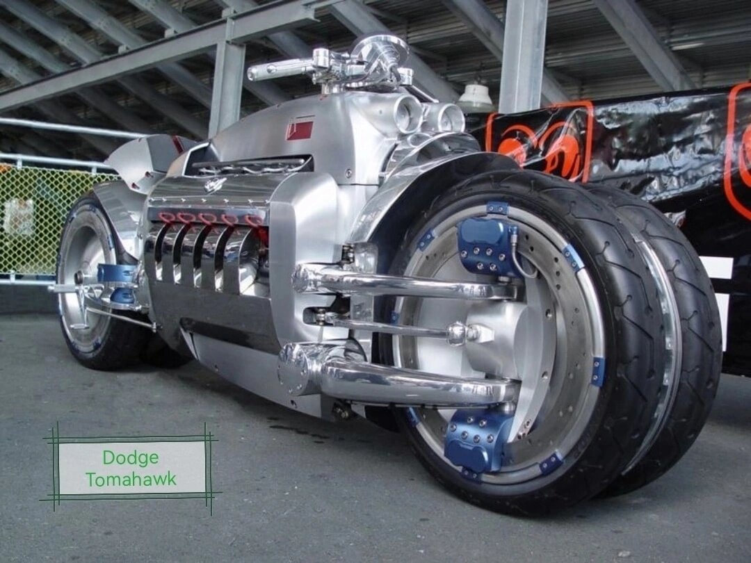 🔘 1 место: Dodge Tomahawk Лидером списка заслуженно становится самый быстрый мотоцикл Dodge Tomahawk. Инженерная мысль позволила оснастить этот байк 10-тицилиндровым V-образным мотор от автомобиля Додж Вайпер. Объем движка равен 8,3 литра. Этот мотор дает агрегату 500 л.с., разгоняющих байк с 0 до 100 всего за 1,7 секунды. Tomahawk способен разогнаться до 480 км/ч при своем немалом весе в 680 килограмм. 🔘 2 место: MTT Street Fighters Второе место занимает MTT Street Fighters. Компания MMT умеет удивить своих клиентов. От предыдущего байка, Street Fighters отличают разве что характеристики и внешние модификации. Невероятная мощность двигателя в 430 л.с. позволяет разогнать мотоцикл до 402 км/ч. 🔘 3 место: MTT Turbine Superbike Тройку лидеров открывает дорогостоящий MTT Turbine Superbike. Всего таких мотоциклов выпускается 5 штук в год, а цена составляет 200 тысяч евро. MTT оборудован газотурбинным двигателем от компании Роллс-Ройс и двухступенчатой коробкой передач. Оснащенный