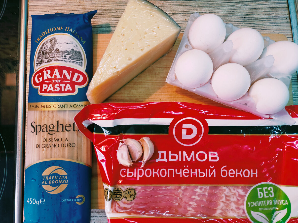 Я люблю не только путешествовать, но и есть. Карбонара - любимое блюдо моего мужа. Удалось найти рецепт, по которому дома она получится куда вкуснее, чем в ресторане. Готовится быстро и просто. Берем: Спагетти - 450 гр. Бекон - 200 гр. Желтки - 6 шт. Сыр твердый - 200 гр. Чеснок - 3 зубчика. Чем больше бекона и сыра - тем вкуснее. Пропорций придерживаться не обязательно, но если будет меньше - карбонара получится менее насыщенной по вкусу. 1. Отвариваем спагетти. Я предпочитаю итальянские твердых сортов и варю их аль денте, когда чуть прилипают к зубам - интересные ощущения. 2. Пока вода на спагетти закипает - режем чеснок. 3. Режем ломтиками бекон 4. Белки отделяем от желтков. Белки убираем и используем когда-нибудь потом. Если при разделении часть белка попала в миску - не страшно. 5. Сыр натираем на очень мелкой терке. Сыр нужен пармезаноподобный - очень твердый, созревший. Я предпочитаю белорусский Фрисбург. Пробовала белорусский Пармезан Де Люкс - мне не так вкусно. 6. Когда во