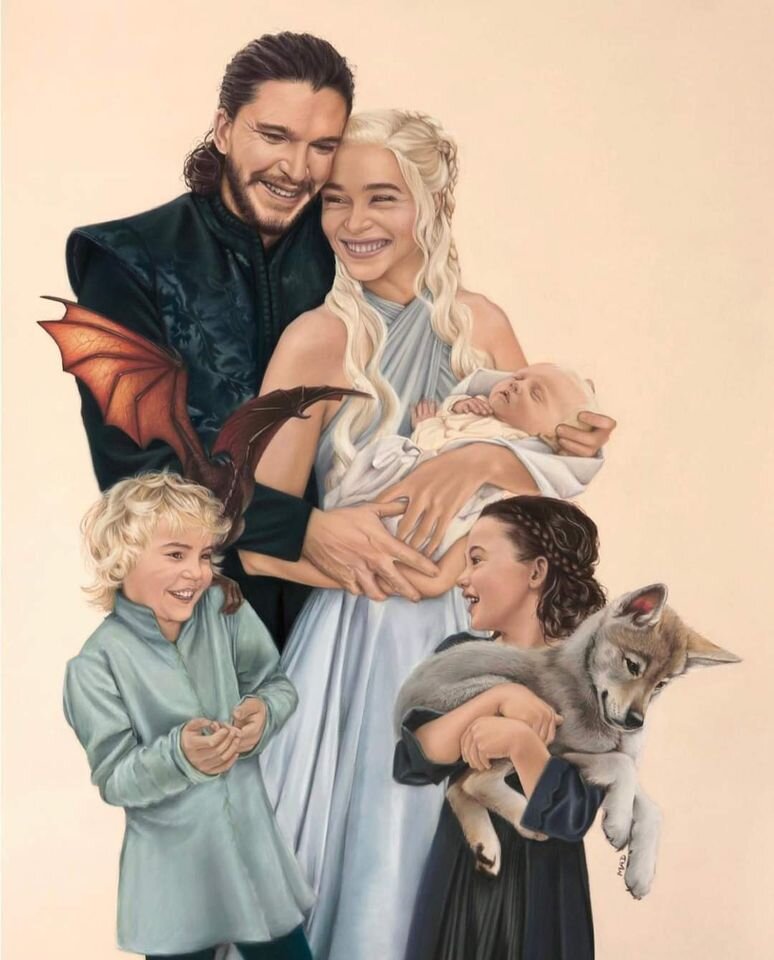 Случайно попалось на глаза на просторах Сети, вот я и подумала - а было бы неплохо, а? Я не большая поклонница слезливо-сопливых концов, но тот конец что явили нам вообще не в какие ворота не пролез... Не оставил приятного послевкусия, не раздал всем сестрам по серьгам... я бы Брана исцелила - пусть бы его сознание перенеслось в кого-то другого, здорового..., Дейнерис не стала бы жуткой тварью, убивающей почем зря всех подряд, Сноу бы получил награду, жизнь у него была трудная, и предъявы к нему необоснованные все до одной, на мой взгляд.... Да много о чем можно было бы сочинить по другому и даже вот такой сладкий вариант меня бы устроил. Кровищи в сериале было более чем достаточно. Кстати да, надо написать про Игру престолов... Просто бывает иногда что авторы так свой же собственный канон изуродуют, что даже думать о нем противно становится.