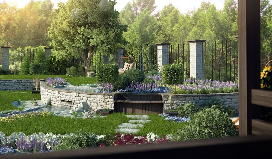 Начинать нужно с высокорослых. Учитывайте их размеры во взрослом состоянии и отметьте на плане. Определите величину тени, куда они будут ее отбрасывать. Вот что особенно важно: крупные деревья должны быть размещены так, чтобы их мощная корневая система со временем не повредила дорожки, коммуникации или фундаменты построек. Для цветника собирайте растения со сменяющим друг друга цветением, чтобы клумбы всегда были яркими. Помните, что большое количество клумб отнимает много времени и сил. Да, это красиво, но требует ухода. С многолетниками проще. Можно скомпоновать цветники только из них или «разбавить» однолетниками. Цветовую гамму подбирайте по желанию - правил нет. Можно выбрать буйное многоцветье или лаконичный монохромный ландшафт с небольшими яркими акцентами. В последнем случае нужен газон. Он красив, но требует постоянного внимания и ухаживать за ним сложно. Лужайке нужна регулярная стрижка, подкормка, полив, прополка, подсев. Можно украсить ландшафт декоративными элементами: кл