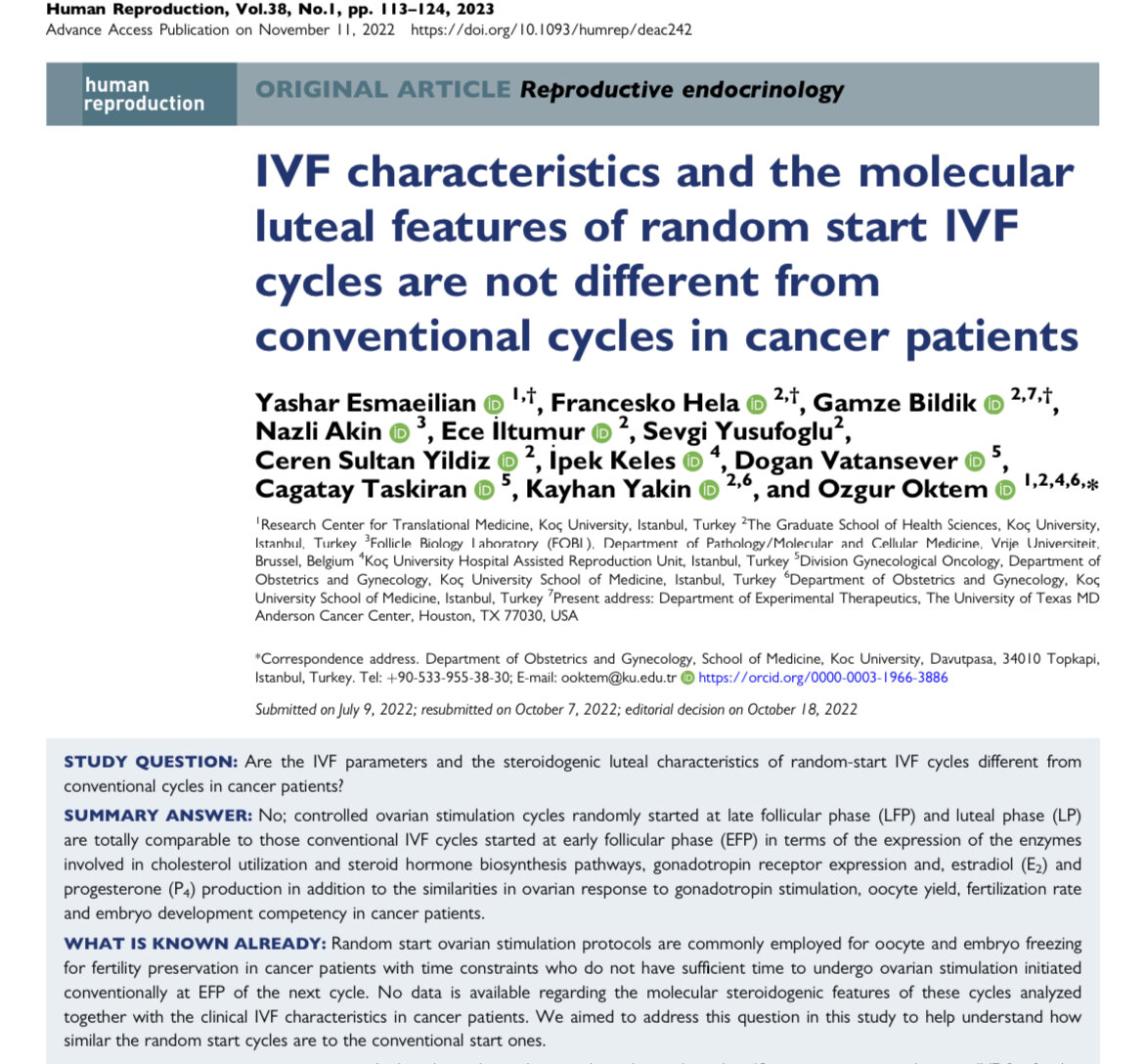 ВОПРОС ДЛЯ ИЗУЧЕНИЯ: Отличаются ли базовые параметры и стероидогенные лютеиновые характеристики в "random-start" протоколах по сравнению со стандартной стимуляцией в программах ЭКО у онкологических больных?