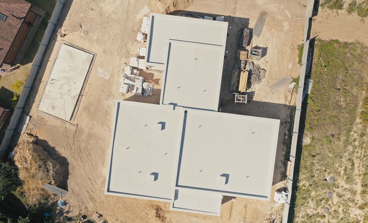 На конкретном примере по шагам показали, как мы в ROOF DEVELOPMENT укладываем плоскую кровлю для частного дома, какие материалы используем и почему выбираем именно их. Для примера этой статьи взяли реальный объект из нашей практики. Общая площадь крыши здания 351 м² – кровля выполнена на пяти отдельных участках: небольшой участок входной группы и участки по 70-120 м². Наша бригада зашла на готовое монолитное железобетонное основание плоской крыши. ШАГ 1 По периметру плоской крыши и по вентиляционным шахтам сделали огрунтовку битумным праймером. Благодаря этому шагу, после мы с легкостью заведем пароизоляцию на вертикальные поверхности плоской крыши. ШАГ 2 Уложили пароизоляционный слой. Здесь нет необходимости приклеивать битумную пароизоляцию к основанию плоскости – многослойный кровельный пирог “пригрузит” её сверху собственным весом. Мы склеиваем только швы и поднимаем пароизоляцию на вертикальную часть на высоту утеплителя. ШАГ 3 Для теплоизоляции применили экструдированный пенополи