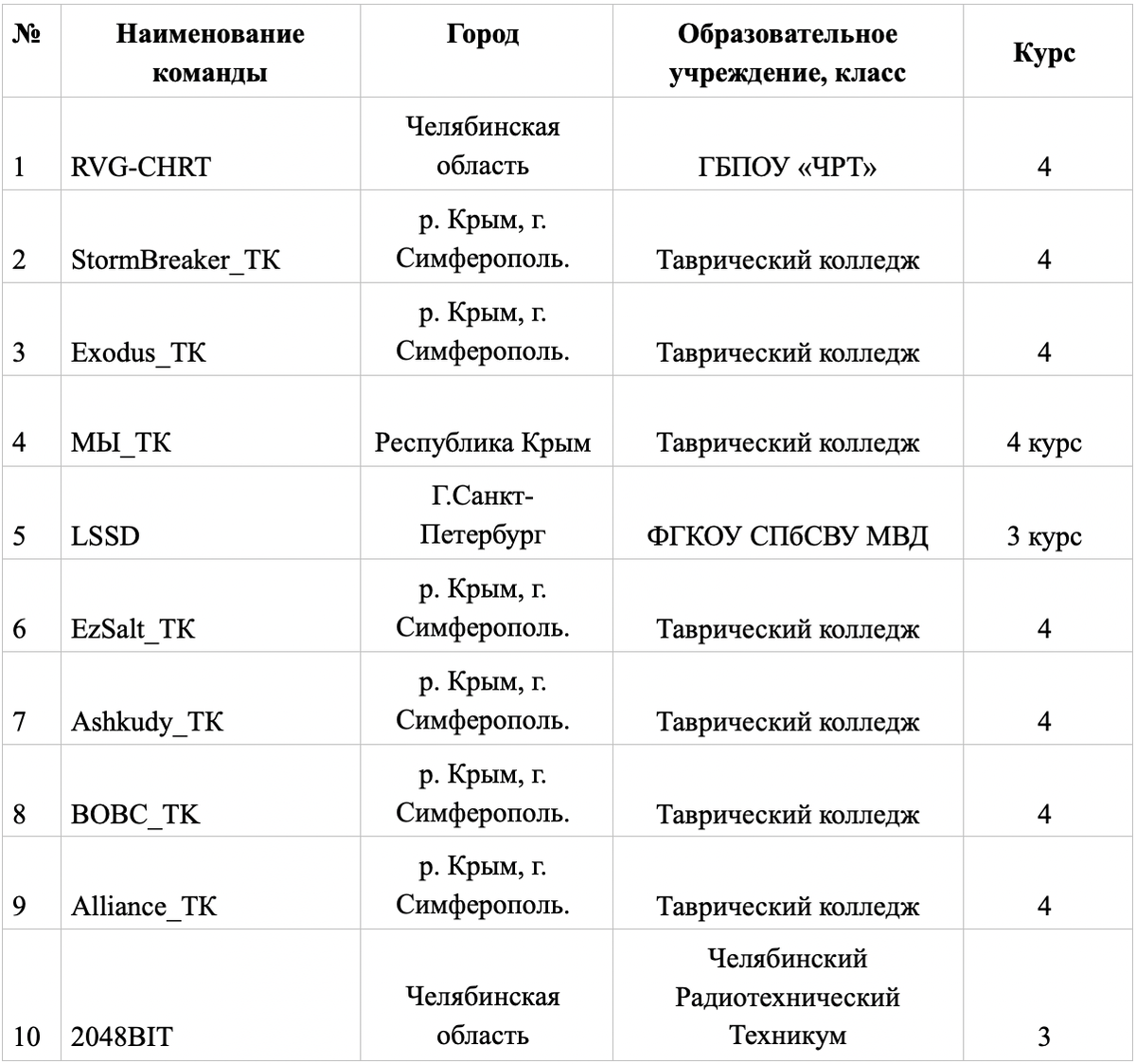 17 декабря с 08:00 до 18:00 состоялся второй всероссийский квиз-турнир «Мир Крипто», который был посвящен криптографии. Квиз-турнир прошел в онлайн формате для учащихся 1-2 курсов технических вузов и колледжей, школьников 7-11 классов, воспитанников кадетских корпусов и кадетских классов, суворовцев, юнармейцев, членов спортивных и творческих коллективов, неформальных объединений города Москвы, Московской области, Санкт-Петербурга, Екатеринбурга, а также Алтайского, Приморского и Хабаровского края и других субъектов Российской Федерации.