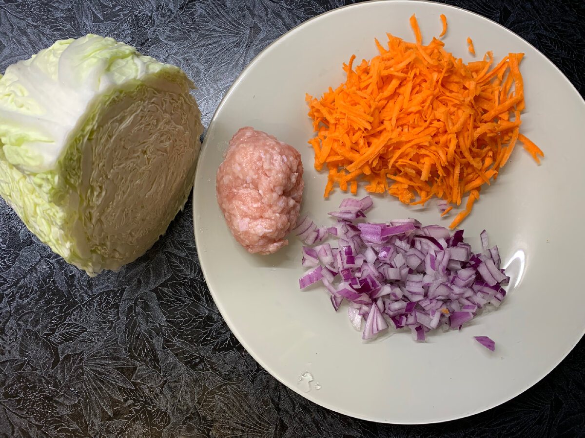 я на свою усмотрение решила добавить впервые фарш. Для полноценного блюда можно потушить котлеты к капусте. Мелко нарезать лук кубиками , натереть на крупной терке морковь , нашинковать мелко капусту. Сделать поджарку из моркови и лука. Добавить фарш. Добавить в сковороду пол стакана кипячений воды , высыпать капусту и тушить под закрытой крышкой на малом огне , 20-25мин, добавив кусочек сливочного масла.