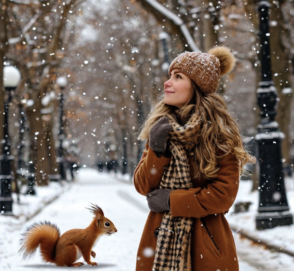 Однажды зимой , возвращаясь с работы , Ленка не захотела садиться в автобус , а решила прогуляться до следующей остановки через большой городской парк . Погода стояла чудесная , безветренная . Шёл снег , и Ленка шла не спеша , то и дело поднимала голову вверх и с удовольствием подставляла лицо под падающие снежинки.