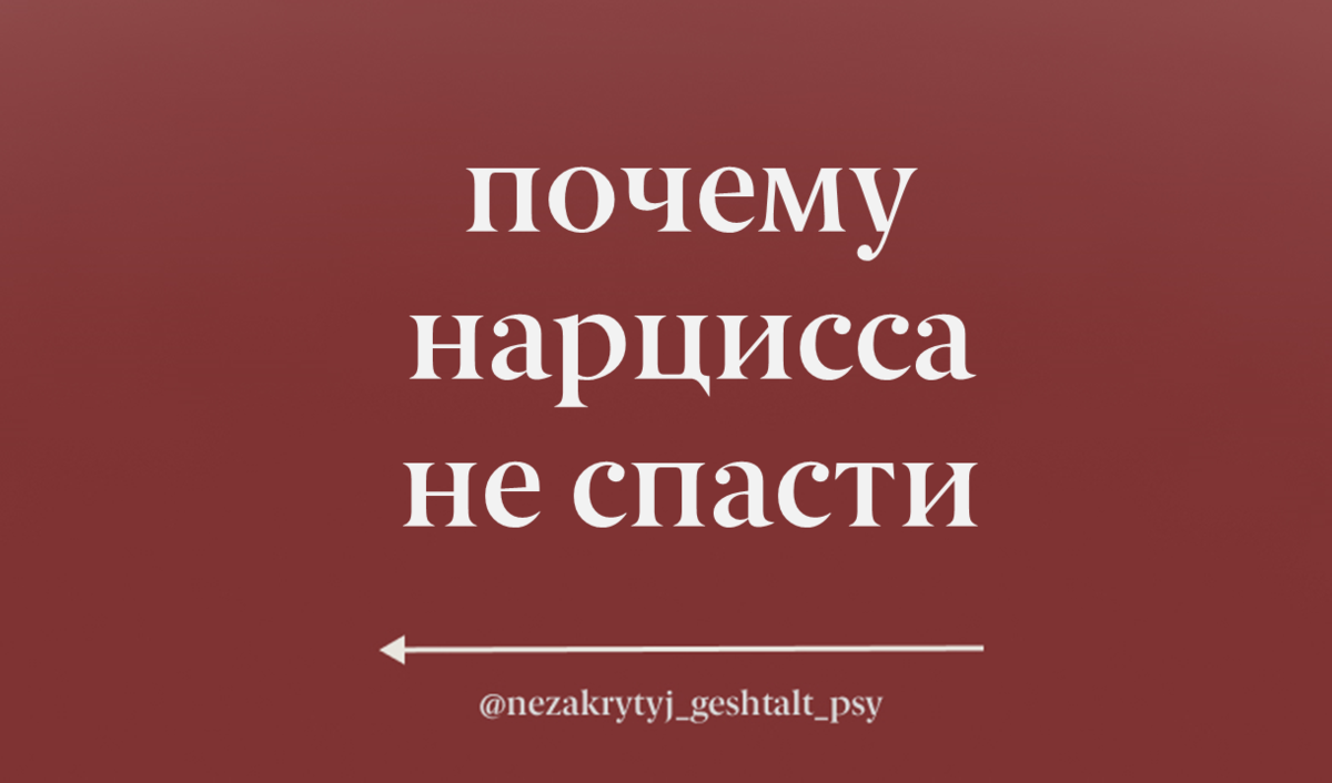 Многие зарываются в попытках спасения отношений с нарциссом, и дойдя до точки, что на динамику отношений влияет структура личности нарцисса, начинают зарываться в спасении уже нарцисса. Это настоящий оксюморон, который и случается в созависимости - человек, который может реально страдать в отношениях и иметь квалифицированный статус Жертвы, начинает спасать нарцисса, абсолютно не замечая, что сам находится в эмоциональной мясорубке, в отношениях, где он только удобный объект, инструмент декопенсации ощущения личной ущербности нарцисса, контейнер его чувств, куда нарцисс сливает "все неудобные" чувства, ввиду невозможности самостоятельного проживания, объект унижений, средство достижения личных целей нарцисса, или способ удовлетворения потребностей, но только не близкий равно признанный человек. Нарциссу выгодно, чтобы его начинали спасать, именно поэтому нарцисс всегда формирует портрет с размыленным тяжелым детством, искусственно формирует ощущение значимости своих проблем над трудно