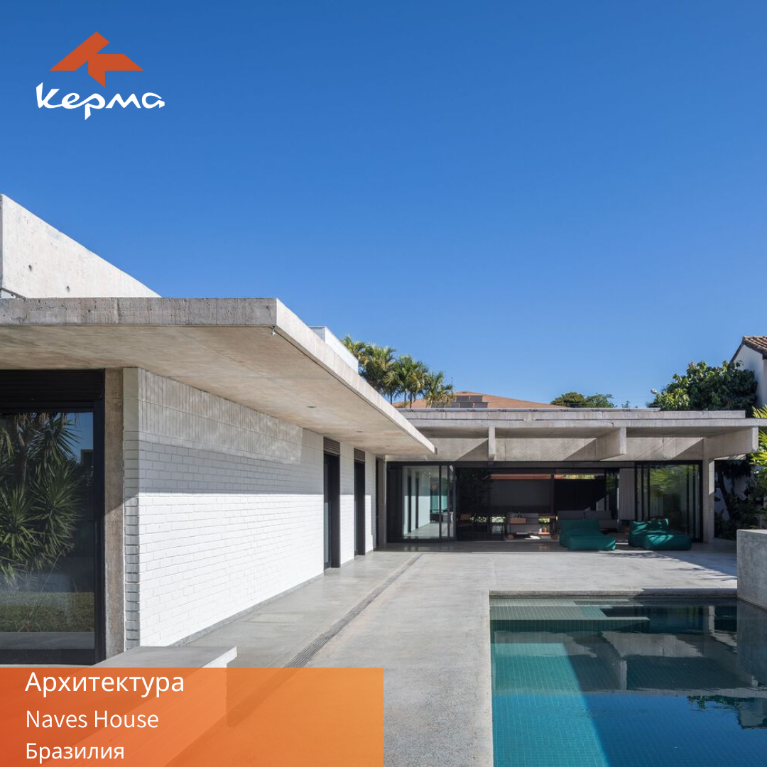 Крыша дома из белого кирпича от студии BLOCO Arquitetos образована последовательностью параллельных балок и открытых бетонных плит. Невесомость между этими элементами создают щели, которые пропускают естественный свет в помещения.
