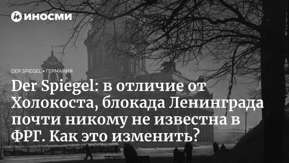 Der Spiegel: в отличие от Холокоста, блокада Ленинграда почти никому не известна в ФРГ. Как это изменить?