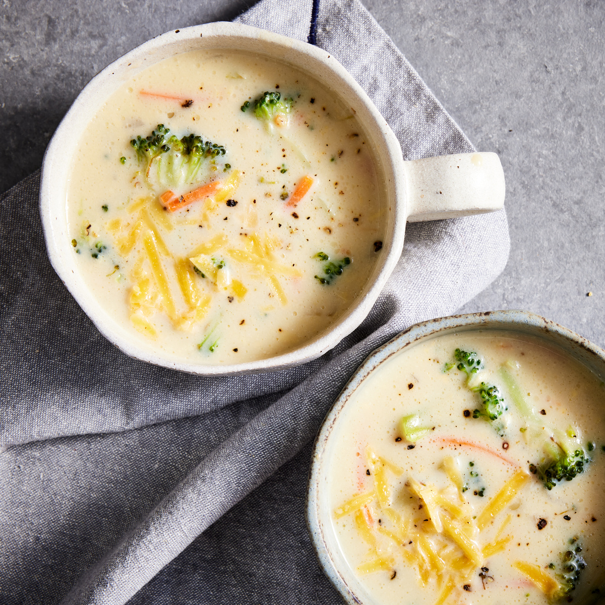 📌 Ингредиенты: ◽️ 1 столовая ложка оливкового масла первого отжима ◽️ 1 стакан нарезанного лука ◽️ 1 чайная ложка измельченного чеснока ◽️ 3 стакана овощного бульона слабо посоленного ◽️ ¼ чайной ложки соли ◽️ 3 небольших пиалы/супницы соцветий брокколи, нарезанных на небольшие кусочки ◽️ ¾ стакана нарезанной моркови ◽️ 2 стакана цельного молока ◽️ 3 столовые ложки кукурузного крахмала ◽️ 2 стакана мелко натертого сыра Чеддер ✅ Способ приготовления: 1. Разогрейте масло в сковороде на среднем огне. Поджарьте лук до прозрачности около 4 минут. Затем добавьте чеснок. Жарить, постоянно помешивая, до появления аромата, около 1 минуты. 2. Добавьте бульон и соль. Доведите до кипения на среднем огне. Затем положите подготовленную брокколи и морковь. Уменьшите огонь, чтобы поддерживать кипение. Готовьте, периодически помешивая, пока овощи не станут мягкими, около 10 минут. 3. Пока варятся овощи, взбейте молоко и кукурузный крахмал в мерном стакане для жидкости, влейте в суп, постоянно помешива