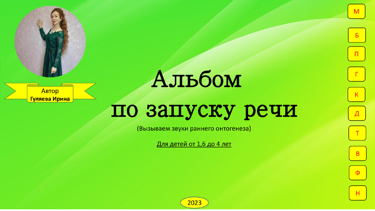 Авторский альбом по запуску речи ( получаем звуки раннего онтогенеза) для детей от 1,6 до 4 лет