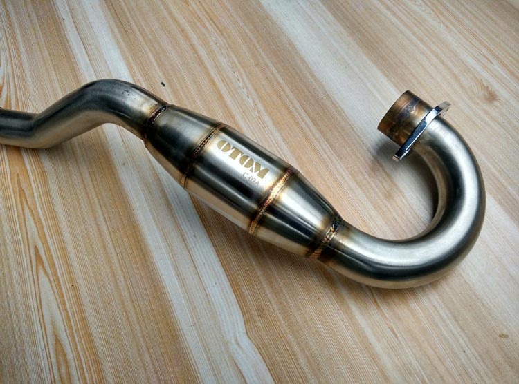 Достоинства резонатора в сравнении с привычными «ковшами»: 1. Лёгкость. Монолитная защита резонатора и картера. Вес примерно 1600 г. 2. Меньше материала необходимо. 3. Выше жёсткость. 4. Выглядит красиво. Защита для резонатора-двухтактника. 1. Крепление на раму. Некоторые не рекомендуют вариться к раме, хотя проблем-то и нет никаких, если сделать всё грамотно. Приваривать «уши» для крепления защиты резонатора к раме надо на заплатки: раму не поведёт, если оторвать заплатку при сильном ударе. 2. Силовой каркас. Вместо защиты из 5 мм листа для экономии жёсткости и веса, можно сделать каркас из 4-х алюминиевых труб вокруг резонатора. На толщине листа можно сэкономить, поскольку основные удары на резонатор попадают снизу, зачастую от крупных брёвен. При падении набок удары слабее. 3. Обшивка алюминием. 4. Хитрости. Защита должна легко сниматься и не выступать вперёд, иначе будет задевать переднее колесо. Вся суть в том, что при приземлении с прыжка подвеску сжимает, база мотоцикла укорачив