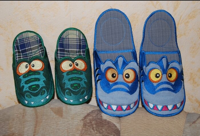 Искала нужные фото и в дебрях террабайтника увидела - ЭТО!!! Лет 15 назад было. У меня только только появилась вышивалка и море вышивки которую надо было освоить. Вернемся к тапкам. Эти тапки старшему сыну, на тот момент мелкий, лет 6 (примерно) и бабушке. Младшим примерно года 2 было. И дочь прям влюбилась в тапочки с крокодилом. Но не в смысле тапочек, а в смысле куклы. В постель к себе и баиньки с тапком. Сделала им то же тапки. Но не сработало. Пришлось договориться с старшим сыном и пожертвовать тапки сестре. Так и спала с тапками долгое время 😅 Хорошо их стирать можно было без проблем. Что то там тапки нашептывали только ей, что любовь у нее к ним такая была. Нет, у детей были игрушки, куклы и прочие развлечения. Но тапочный крокодил победил всех! 😂 Взгляд у него такой... голодно несчастный! Читайте также.