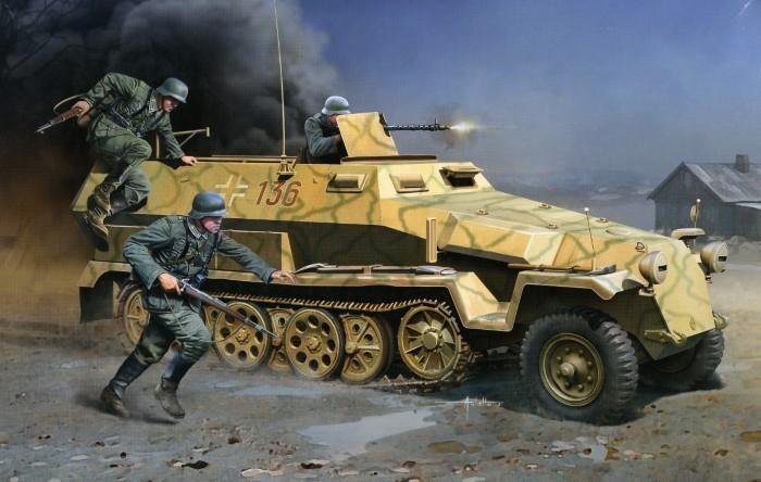 Рота тяжёлого оружия: 6 машин огневой поддержки mittlerer Schutzenpanzerwagen mit 7,5 cm KwK 37 (Sd.Kfz 251/9).