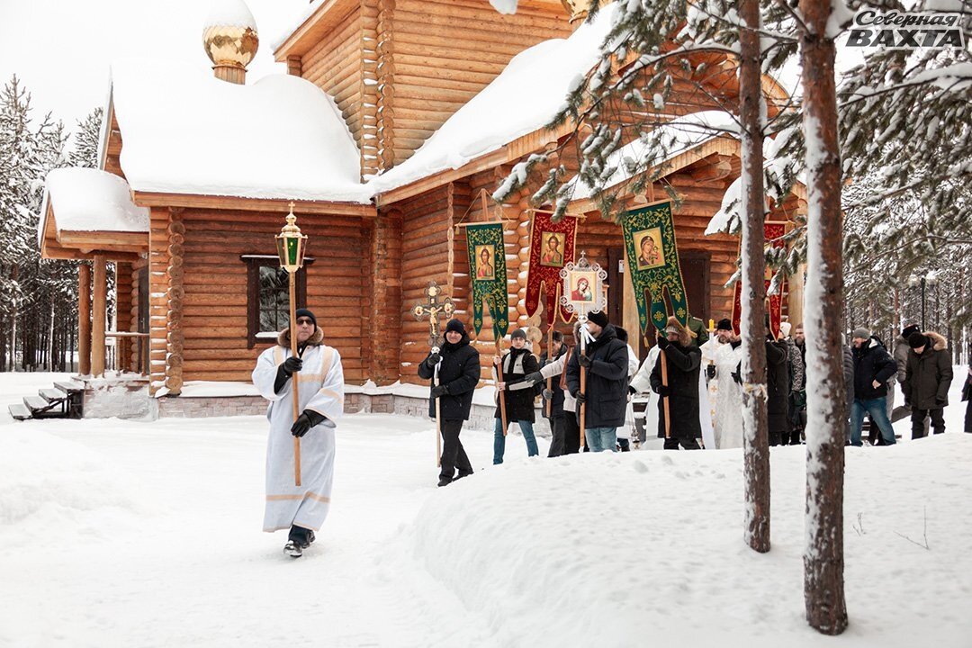 Торжественный звон колоколов ознаменовал завершение церковной службы. После нее от храма Сергия Радонежского, что на территории Центра духовно-нравственного воспитания, горожане крестным ходом двинулись в сторону озера Ханто. Здесь возле вырубленной в хрустальном льду иордани были установлены палатки и раздевалки, в которые специалисты «Энерго-Газ-Ноябрьска» провели свет и тепло. Неподалеку расположились купели для совершения обряда омовения. А рядом с ними посты спасателей, сотрудников МЧС, скорой помощи, правоохранительных органов, казаков и представителей народной дружины. Для горожан, которые слишком переохладятся, дежурил автобус. В нем люди могли отогреться и попить горячего чая. Одним словом, было сделано все, чтобы верующие максимально комфортно и с соблюдением необходимых правил безопасности совершили священный обряд. Настоятель храма архистратига Божия Михаила протоирей Александр Новиков прочитал молитву и освятил воду, несколько раз опустив в нее крест. — Теперь все желающи