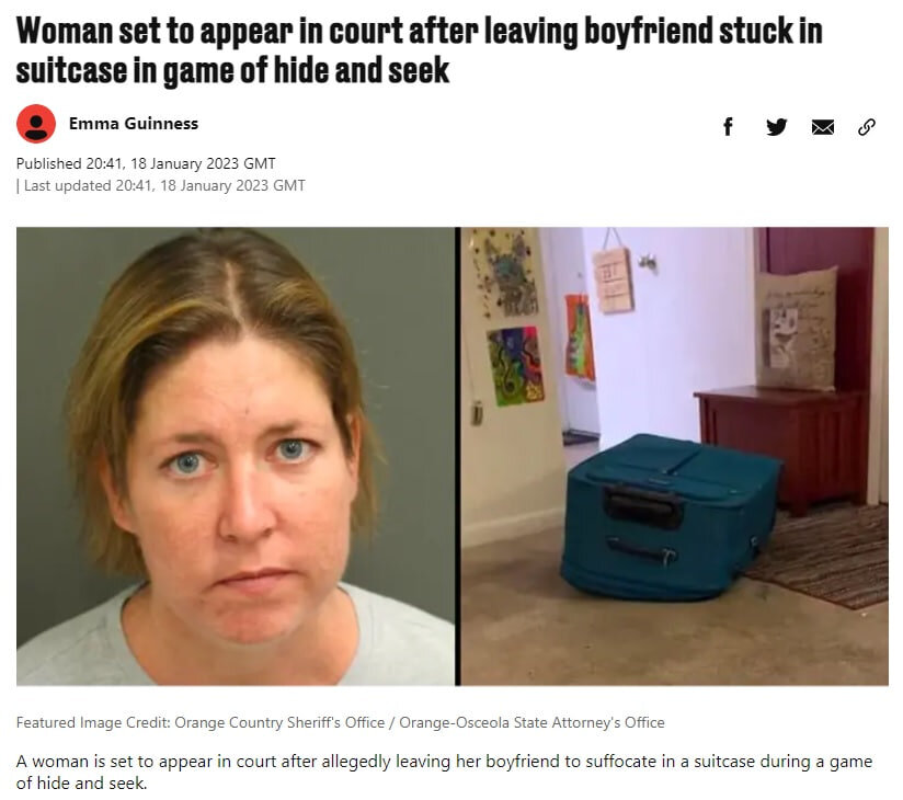 Американка, которая бросила умирать бойфренда во время игры в прятки в чемодане, предстанет перед судом