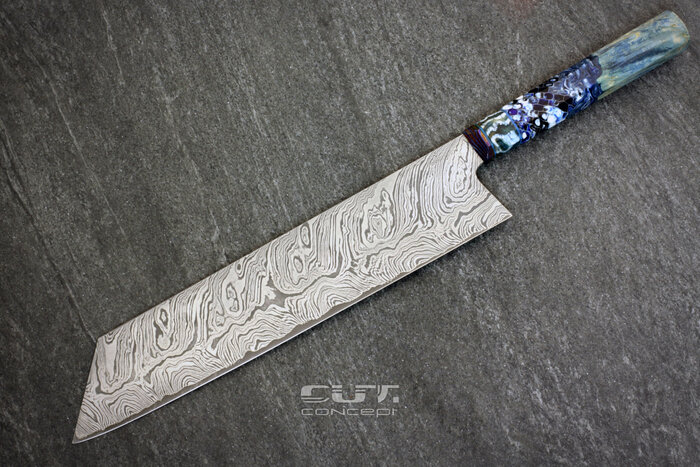 Овощной нож стоит 5 тыс. руб. Утилитарный нож 7 тыс. руб. Шеф, киритсуке, сантоку 10 тыс. руб. Материал клинка - сталь N690. Это вполне соответствует ценам на серийные изделия из подобных материалов. Не смотря на то, что я называю этот комплект бюджетным или "простым", он уже сложен для большинства мастеров и практически не встречается в серийном производстве. 1. Потому, что здесь спуски/гринд/слесарка выпуклая линза, она же конвекс, намного сложнее в изготовлении чем лезвие обычного ножа. Правильный конвекс это гораздо более качественный рез. 2. Потому, что сведение 0.0-0.2мм (потоньше/потолще на ваше усмотрение) вкупе с конвексом это просто лучшее качество и легкость реза которые можно себе позволить за эти деньги, по крайней мере я искренне так считаю. 3. Ну и так же все кромки и грани/ которые контактируют с руками/ полированы. Буквально в этих изделиях нет ни одной детали обделенной вниманием. Буду рад если вы приведете в пример достойные аналоги.