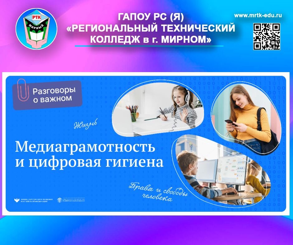 "Разговоры о важном" в МРТК: "Медиаграмотность и цифровая гигиена" (материалы для 10-11 классов, СПО). Видео. Ссылка Разговоры о важном. Медиаграмотность и цифровая гигиена с официального сайта. Ссылка для скачивания материалов «Разговоры о важном» с Google диска. ЗАНЯТИЕ для обучающихся СПО по теме «КИБЕРБЕЗОПАСНОСТЬ»