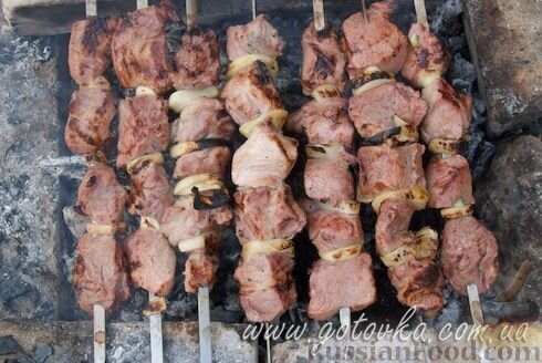 Шашлык в шампанском Быстрый рецепт приготовления шашлыка, маринованного в шампанском. Результат превысил все ожидания! ПродуктыСвиной ошеек - 2,5 кгСухое шампанское - 1 бутылкаЛук репчатый - 5 шт.Приправа для шашлыкаСоль Как-то утром, посмотрев на яркое весеннее солнце, я решила что срочно хочу жарить шашлык, дышать свежим воздухом и наслаждаться другими прелестями пикника. Скажу по секрету, что рано я встаю только на работу, а в выходные дни я просыпаюсь, когда многие люди начинают думать об обеде. И, если бы не проверенный временем рецепт шашлыка, шашлык ждал бы нас только на следующий день. Хорошо, что я знаю, как быстро замариновать шашлык. Но в любом деле главное — правильное организация. Через час на кухне меня ждал свежайший свиной ошеек и бутылка шампанского. Муж посмеялся, что шампанское утром пьют только аристократы и сами знаете кто, я спорить не стала — родословная и моральные принципы свинки мне были неизвестны, а шампанское предназначалось именно ей. Еще через час у нас с