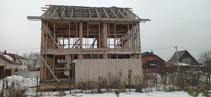 Привет, дорогие подписчики и те, кто спешит ими стать!:) Последнее время пишу редко - много работы, но материалы с технадзоров копятся и в свободное время будут постепенно публиковаться. А сегодня хочу рассказать про то, что же происходит с домом, который начали строить на соседнем у меня участке год назад. Если кратко, то соседний со мной участок был куплен девушкой, которая решила начать на нём свою карьеру девелопера и собралась строить дом на продажу. При этом никакого опыта в строительстве у неё не было. Она наняла бригаду, которая кое-как собрала каркас, затем укрыла крышу наполовину и исчезла с участка. Перед этим они запенили щели в обвязке дома монтажной пеной и утеплили полы будущего дома прямо под дождём. Начало истории здесь: Стройка за стеклом. История о том, как строят каркасный дом моей соседки и советы как избежать её повторения на вашем загородном участке Продолжение здесь: Как вам построят каркасник, если вы не будете контролировать стройку и не прочитаете СП (Продолжение событий на Стройке за стеклом)