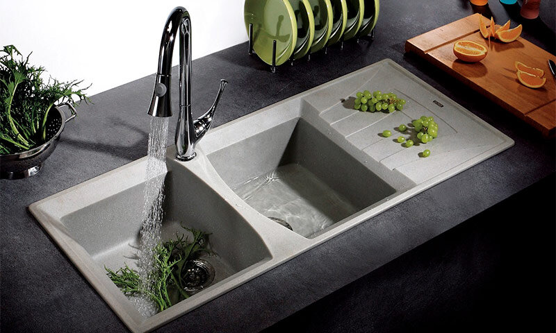 Мойки из искусственного камня изготавливаются по той же технологии, что и кухонная мебель. Поэтому мойка из искусственного камня может быть интегрирована в гарнитур. Акриловые мойки – это наиболее популярные мойки из искусственного камня. Они изготовлены из акрилового полимера, который обладает высокой прочностью, устойчивостью к ударам, царапинам и другим повреждениям. Для изготовления мойки из акрила применяется метод литья, а не экструзии, как при производстве кухонных моек из камня. Мойки для кухни могут быть одинарными и сдвоенными. Двойная мойка с двумя чашами позволяет одновременно мыть посуду и продукты. Мойка с одинарной чашей подойдет для семьи из 2-3 человек. Ей удобно пользоваться, если она достаточно глубокая. Но если у вас часто бывают гости, то лучше приобрести мойку с двойной чашей.