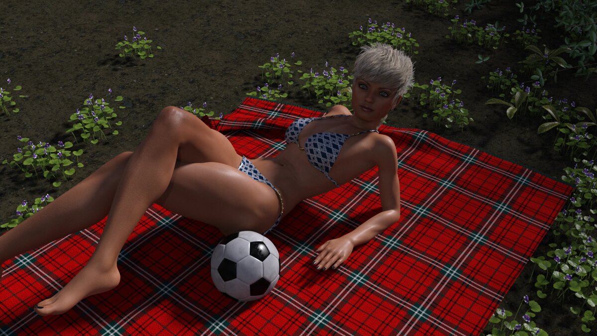 Удар был настолько точен, что мяч остановился буквально в сантиметре от бока лежащей женщины. Андрей подошел и наклонился, чтобы поднять мяч, меж тем с удовольствием разглядывая Владу. На женщине был открытый купальник, чашечки верхней части не сильно прикрывали широкую грудь с большой ложбинкой между довольно крупными полушариями. Хотя передо Андреем лежала зрелая, уже рожавшая женщина, живот у нее был плоский, бедра по-спортивному крепкие. Дополняла же чарующую картину узкая девичья талия.