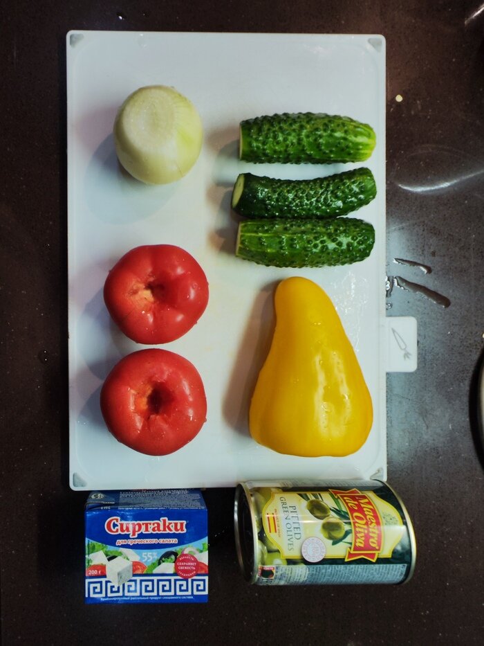Всем привет! Я люблю готовить, а еще я люблю считать. Мне захотелось совместить эти два занятия и подробно выяснить, сколько стоят обычные блюда и сколько стоят на первый взгляд дорогие. Потихоньку веду заметки на этот счет и когда-нибудь подведу итог. Хотел публиковать по посту в неделю, в итоге выпал на два месяца. Надо наверстывать! А после новогодних праздников нужно что-то легкое, полезное и не пиво. Например, греческий салат. Блюдо стоит на втором месте по сложности после легендарных бутербродов с икрой, как раз для моих альтернативно произрастающих рук. Давайте быстренько нашинкуем, посчитаем и немедленно съедим! Пост получился совсем коротенький. 3 Огурца - 42р. 2 помидора - 54р. 1 болгарский перец - 64р. 1 луковица - 8р. банка оливок - 169р. 200 гр. сыра для греческого салата - 108р. оливыч - 7р. соль. Все режем кубиками, перемешиваем и кидаем в салатник. Сыр в последнюю очередь - его размажет. Если сыр совсем крошится, можно класть слоями - слой всего, несколько сырных кубико