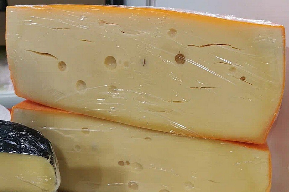 Как это выглядит? Трещиноватость Если вы видите на разрезе головки сыра вот такую картинку, то можете, также как и я, с чистой совестью, проходить мимо такого сыра. Трещины на поверхности головки или внутри ее - это самый понятный и очевидный признак нарушения технологии производства сыра. Причин для их появлений несколько, все они разного характера. То, что вы видите на этом фото получилось, по большей части, из-за того, что сыр