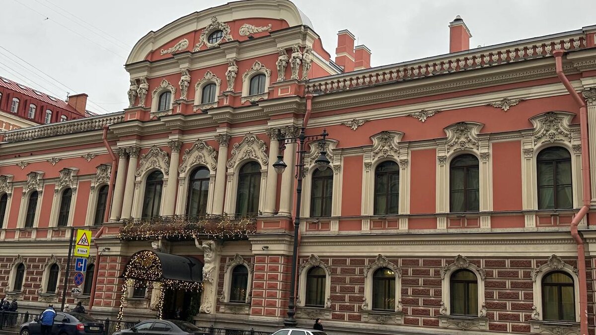 Оказывается у нас в России возможно все. Особняк с тремя адресами — ул. Восстания, 45, Саперный пер., 18 и Гродненский пер., 9 — сюда привела меня подруга в прошлые выходные. Колонны и пилястры, тяжелый балкон, который поддерживают гипсовые атланты, обильная и разнообразная лепнина снаружи, мраморная лестница, роспись и золочение на стенах и потолках внутри — такое оформление сделало бы честь дворцу кого-нибудь из великих князей. Но его владельцами в 19 веке стали братья Мясниковы. Этот род был не только один из самых богатых, но и самых известный в России. Интересная фамилия пошла от основателя рода — ростовского крестьянина Федора, который нажил свое состояние тем, что сперва просто торговал мясом в лавке, потом стал скупать скот по деревням, а затем развернул мясную торговлю на всю губернию. Когда и этого показалось мало, Федор Борисович занялся винными откупами и в считанные годы стал таким уважаемым купцом, что в доме его, бывая в Ростове, гостили члены императорской фамилии и вы