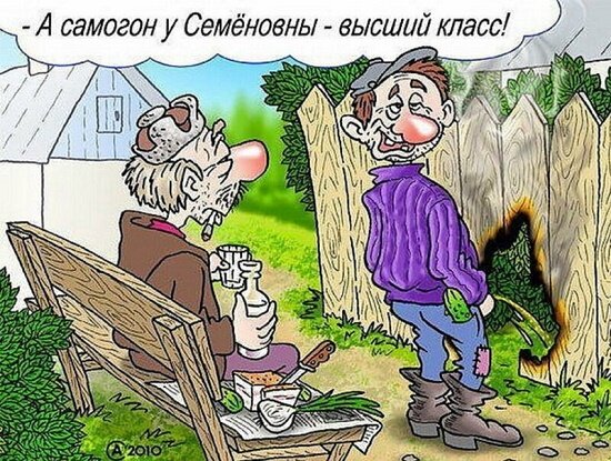 - Это крафтовый самогон гараж эдишн выдержка 14 дней! - Вчера у сестры на даче пила самогон! Наутро как заново родилась! - Это как? - В капусте, блин, нашли! 😀😁😂 Разговаривают соседи: - Мой сосед опять самогон все выходные гнал! - Откуда знаешь??! - Его кролики опять моей собаке морду набили!! - Испеченный пирог невозможн