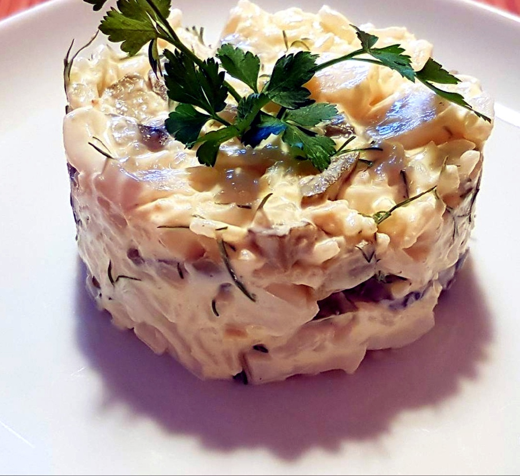 Многие обходят стороной эту полезную рыбу. Напрасно! Недорогая - потому что вылавливают ее в больших количествах, а по ценным качествам она не уступает треске и даже лососевым. Как в любой северной рыбе, в минтае много витаминов и полинасыщенных кислот, которые очень полезны для печени. А еще в нем много йода, фтора, калия и кальция, фосфора. Салат с вареной рыбой Рыбу положите в кипящую воду и сварите до готовности. Переложите на тарелку, остудите, разберите на небольшие кусочки, удаляя кости. Яйца сварите вкрутую и нарежьте мелкими кубиками. Сыр натрите на крупной терке, огурец нарежьте кубиками или соломкой, зелень - измельчите. Смешайте все ингредиенты, добавьте майонез, соль, перец. Второй вариант: Отварите и разделайте рыбу. Отварите кальмары (1 минуту с момента закипания) и яйца. Нарежьте кальмары, яйца, огурец и яблоко соломкой, соедините с рыбой и заправьте майонезом, посолите, поперчите. Рыбный паштет Лук и морковь нарежьте произвольно и обжарьте на сковороде на растительном