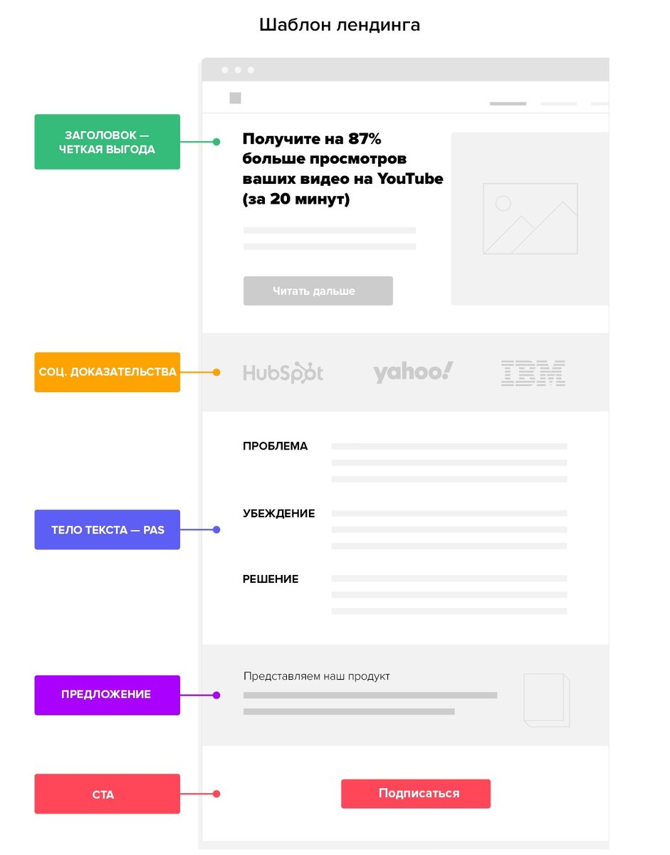 Как увеличить конверсионность текста на посадочной странице? Делимся структурой с пояснениями. Меньше 5 минут на изучение. ⏲ Привет, это PR-CY! Если вы развиваете свой или клиентский сайт, вам будет полезен онлайн-сервис, который помогает увеличить трафик. Он следит за позициями сайта, проверяет SEO-параметры и ищет URL с ошибками, чтобы вы знали, что улучшать. Если вы создаете лендинг для демонстрации товара, чтобы вести на него трафик, важно удержать внимание пользователя и довести до конверсии — заказа, покупки, звонка, регистрации или другого действия, которое вы от него ждете. Маркетолог Брайан Дин предложил такой шаблон для посадочной страницы, который он сам использует. Смотрите на картинку, а дальше описание по порядку: 1. Заголовок с четкой выгодой Заголовок должен дать читателю понять, зачем ему это — что конкретно он получит от вашего продукта, услуги, подписки, пробной версии или что вы ему предлагаете. Он должен получить ответ на вопрос "Зачем я буду это читать?" 2. Социал