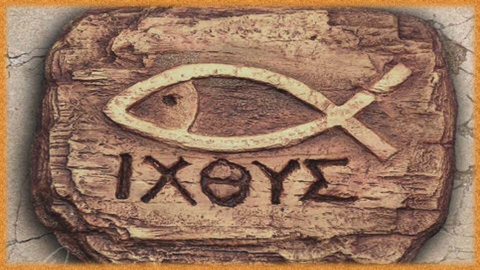 В качестве самого первого «логотипа» христианского сообщества выступало изображение рыбы либо в относительно натуралистичной манере, либо в стилизованном виде в форме т.н. ихтюса. Разумеется, подобный выбор не случаен. Буквы, складывающиеся в слово «ихтюс» из древнегреческого языка, образуют собой аббревиатуру фразы, переводящуюся на русский язык как: «Иисус Христос, Сын Божий, Спаситель».