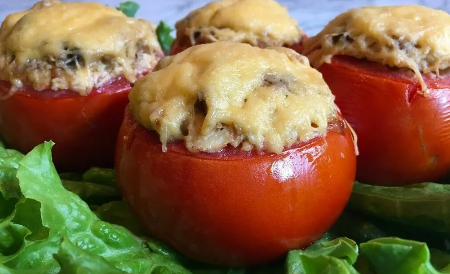 Добрый вечер, дорогие друзья, подписчики и читатели! На днях нашла в интернете очень интересный рецепт помидор, фаршированных курочкой, попробовала приготовить и получилось безумно вкусно. Хочу поделиться с Вами рецептом. Тем более это блюдо готовится очень просто и из минимума ингредиентов. Список ингредиентов: Процесс приготовления: У помидор аккуратненько отрезаем верхушки и удаляем сердцевину. Курочку нарезаем небольшими кусочками и поджариваем на разогретой сковородке в растительном масле. Не забудьте добавить любимые специи. Далее нам необходимо добавить в каждую помидорку начинку из курочки со специями. Начиняем практически до верхушки, оставляя место для майонеза и сыра. После курочки добавляем обильный слой майонеза. В конце посыпаем помидорки натертым сыром. Ставим наши помидорки в разогретую духовку буквально на 10-15 минут при температуре 240 градусов. Вкуснейшее, ароматное блюдо готово. Приятного аппетита!
