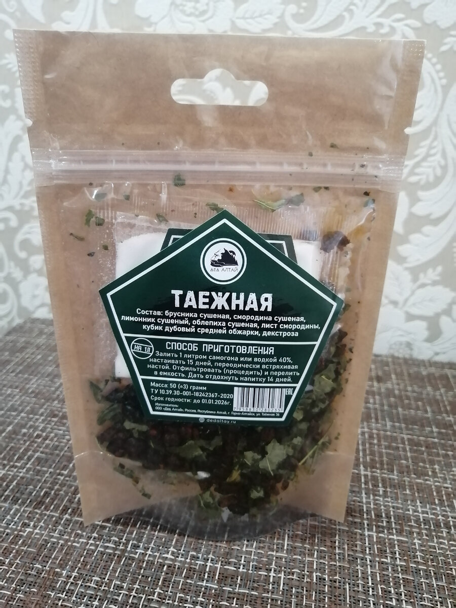 Всем привет. С вами Самогон ТВ. Поймал себя на мысли, что давненько не рассказывал о наборах от Деда Алтая. Материал готов, отснят так сказать, и конечно продегустирован!!! Большинство наборов, производства данной компании, как вы знаете, мне очень по душе. Однако, стоит сказать, что наиболее выдающимися у них получаются на мой взгляд настойки, связанные с их местоположением. Различные кедровки, панты марала и прочие природные Алтайские полезные прелести. Сегодня приготовим одну из таких "полезностей". Настойку "Таёжная". Читаешь состав и понимаешь, что в нём собраны интересных, таёжных ингредиентов. По счастливой случайности, я сам живу не далеко от Алтайских мест и не понаслышке знаю о качествах той же брусники или облепихи. Ладно, хватит расхваливать" дары природы", вернёмся к настойке: Набор рекомендовано залить 1 литром самогона, крепостью 40 процентов, добавить декстрозу и оставить настаиваться в течении 15 дней, периодически встряхивая. Что я и сделал...