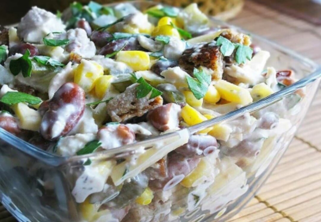 Как приготовить салат с курицей фасолью и кукурузой в домашних условиях, пошагово?