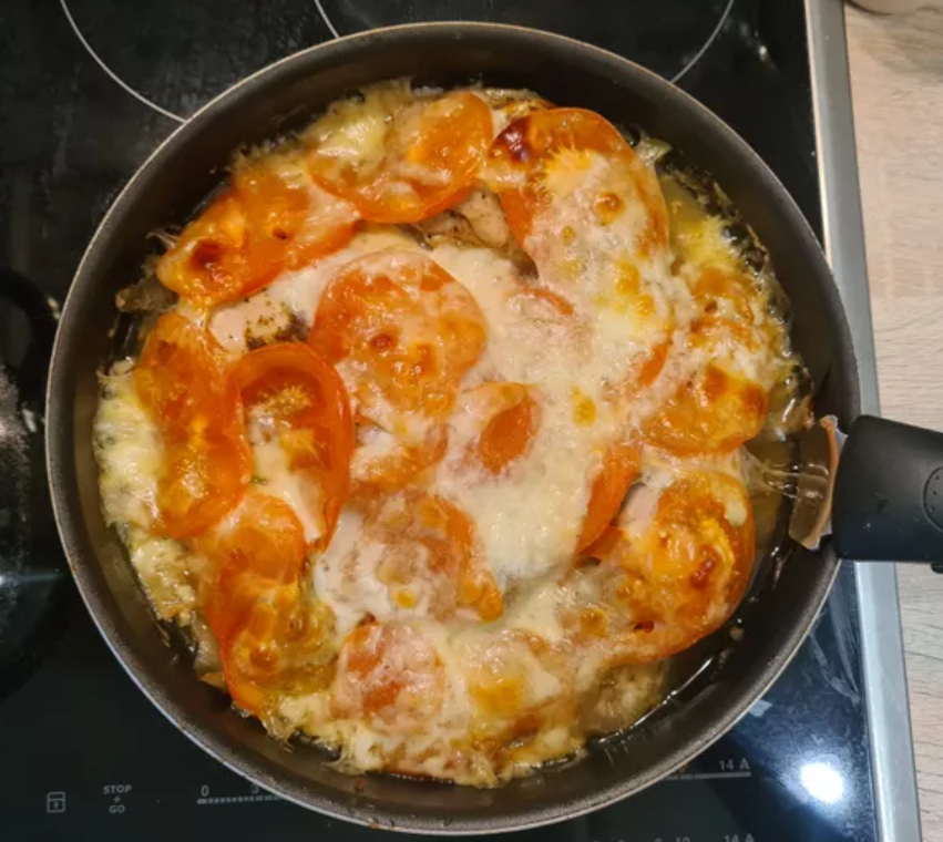 Курица в сочетании с сыром и томатами станет вкусным горячим блюдом для любого праздника. Ингредиенты (6 порций) Курица 550г Сыр моцарелла по вкусу Помидоры 200г 2 зубчика чеснока Репчатый лук 1 шт. Соевый соус 2 ст. л. Мед 1 ч. л. Горчичное масло 1 ст. л. Шаг 1 Курицу промыть и просушить. Добавить специи и нарезанный кольцами лук. Дать постоять 10 минут Шаг 2 Выложить курицу в форму для запекания. Поставить в духовку на 30 минут при 200 градусах. Шаг 3 Нарезать сыр и томат. Достать курицу, она почти готова. Шаг 4 Выложить на курицу томат и сыр и снова поставить в духовку на 10-15 минут до полной готовности. Можно подавать с любимым гарниром. Приятного аппетита!