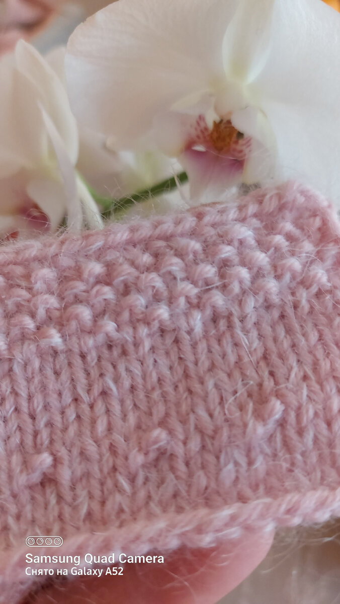 Тут недавно задумалась на сколько быстрая стала наша жизнь. Настолько, что времени вязать тонкое полотно на варежках просто нет времени. Но полотно из толстой шерстистой пряжи мне не нравится. Да и спицы номер 4 или даже 3.5 для меня это уже сложность. И вот что я придумала. У меня была пряжа PURE SOCK PLUS от NAKO. в 100гр. 200м. Состав: 25% Полиамид 75% Шерсть Цвет нежно розовый 10639. Немного простоват в своем цвете подумала я. И вот методом проб и ошибок к ней я подобрала ниточку мохера тоненькую 1000м в 100гр. Тем самым я добавила пушистости + закрыла мохером промежутки (спицы 4 мы помним), соответственно усилив термальные свойства и + конечно тот самый меланж который и дал эффект игры цвета в полотне. Сама нить мохера закрывает переход цветов и как бы "смягчает" розовую мимимишность в полотне. Дальше я набирала по 10п. На спицу и вязала сначала манжет 20рядов далее ряда 3 ряда до формирования пальчика и сам палец из прибавок петель. Далее, вяжем саму варежку закрываем 3л. 2