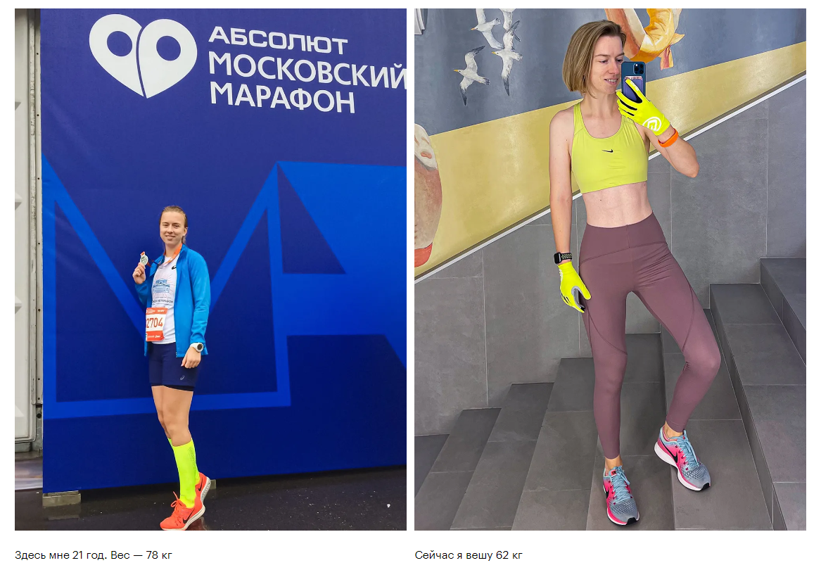 Первая попытка в 17 лет привела к анорексии. Но мне удалось ее победить: я улучшила свое питание и снова начала набирать вес. В результате она растолстела до неудобного для себя состояния. На вторую попытку решилась в 22. На этот раз все получилось: без жестких ограничений похудела за два года на 18 кг.