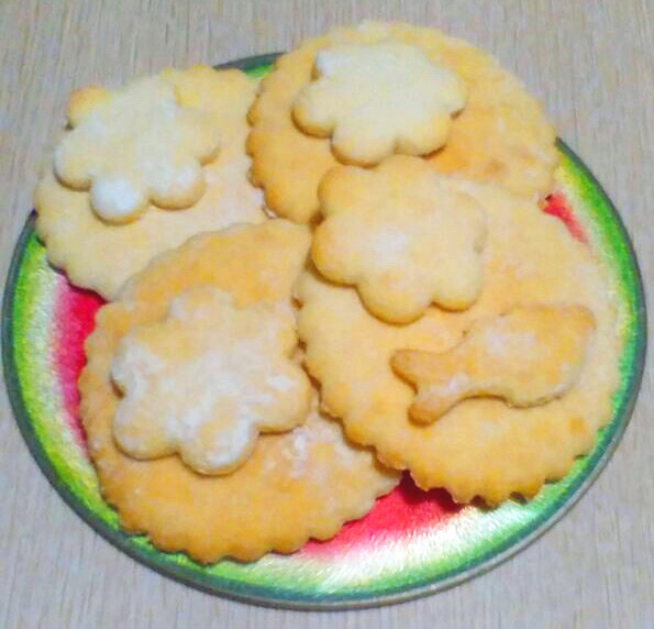 - Раскатать тесто толщиной 6-7 мм. Вырезать коржики, можно нанести на них рисунок. Диаметр коржика примерно 90 мм. Смазать при желании яйцом и выпекать 12 минут при 210 градусах. Коржики очень быстро зарумяниваются,не убегайте далеко, могут подгореть.