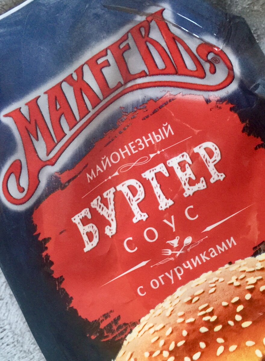 Привет, гурманы!✌️ Очередной БУРГЕР соус , на этот раз фантазии от "Махеев". Появился этот соус достаточно давно, и плотно прописался на полках магазинов. Цена: 69.99 за 200 гр. супермаркет "Перекресток"(цена по клубной карте) Состав: Масло подсолнечное рафинированное дезодорированное, вода питьевая, загустители: Е1422, ксантановая камедь, уксус из пищевого сырья, сахар, яичный желток сухой, соль пищевая, огурцы маринованные, регуляторы кислотности: уксусная и молочная кислоты, пряности (в том числе семена горчицы), томатная паста, горчичное семя (белое, желтое, коричневое), ароматизаторы, красители: каротины, сахарный колер IV, консерванты: сорбат калия, бензоат натрия, антиокислитель аскорбиновая кислота. Ходят слухи, что Дмитрий Иванович Менделеев увидел состав этого соуса во сне Большими плюсами считаю доступную цену и удобную упаковку . Вкус: Яркий вкус солёных огурцов, сладкой и копчёной паприки, майонез и специи... даже томатные нотки ощущаются довольно ярко. Нет понимания ч