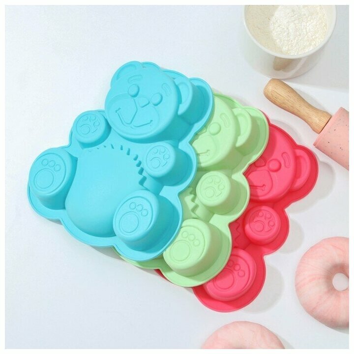 Форма для выпечки станет отличным подарком для хозяйки, стремящейся создать уют на кухне и в доме! Красивая подача десерта приносит не меньшее удовольствие, чем его безупречный вкус! Яркие, красочные и удобные силиконовые формы имеют ряд преимуществ по сравнению с традиционной металлической. Они идеально подходит для использования в микроволновых, газовых и электрических печах, способна выдержать как высокие температуры, так и глубокую заморозку. Благодаря гибкости и антиналипающим свойствам силикона готовое изделие легко извлекается из формы. Силикон безвреден для здоровья, не впитывает запахи, легко моется. Форма для выпечки из силикона — современное решение для практичных и радушных хозяек. Оригинальный предмет позволяет готовить в духовке любимые блюда из мяса, рыбы, птицы и овощей, а также вкуснейшую выпечку. Почему это изделие должно быть на кухне? Советы по использованию формы Готовьте с удовольствием! Топ 15 силиконовых форм: 1. Форма для выпечки «Мишка», 18×14,5×4 см, цвет ми